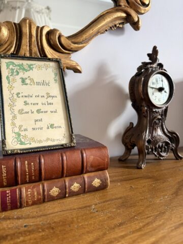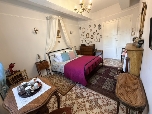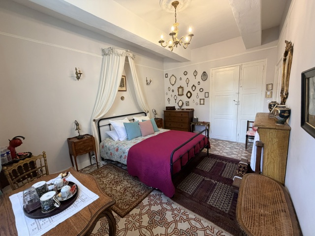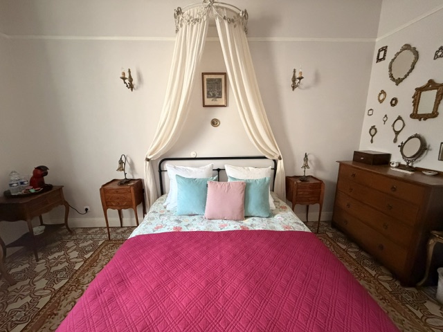 de la commode ancienne en chêne, un mur galerie avec une collection de petits miroirs et de cadres anciens personnalise cette chambre très appréciée des visiteurs. Nous gardons toujours un peu de place pour quelques modèles supplémentaires…